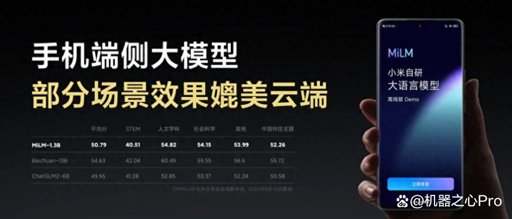At yesterday’s press conference, Lei Jun said that MiLM-1.3B, the latest version of Xiaomi AI big model, has been successfully run locally on mobile phones, and some scenes can be compared with the running results of 6 billion parameter models in the cloud.